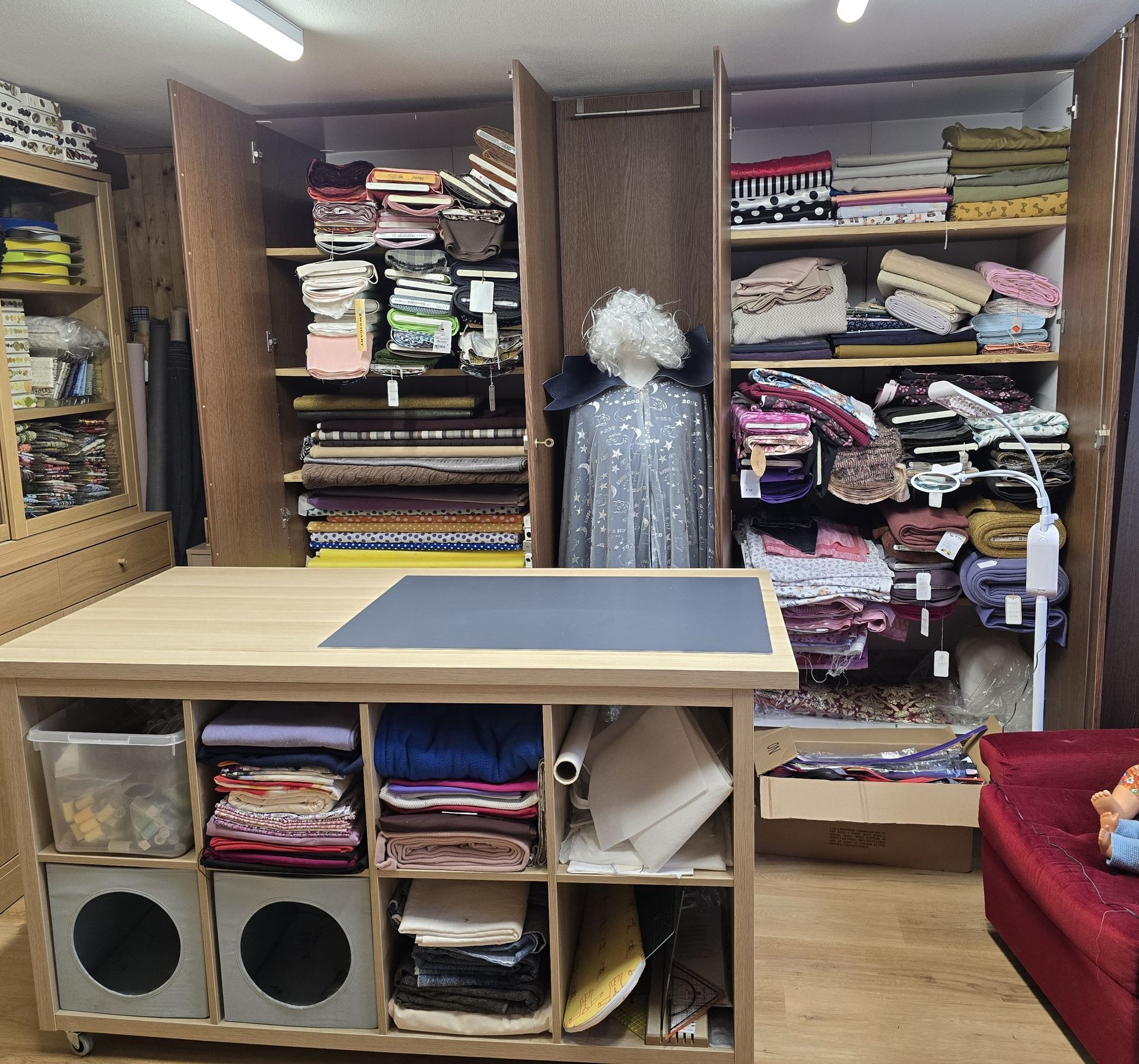 - Ein Zuschneideraum mit Kundenempfang, in dem ich Ihre Wünsche aufnehmen, Mass nehme und berate.